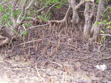 水牛車の乗り場近くのマングローブ林に生えている背の低いタケノコのようなもの。