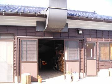カンスイを大釜に入れ薪でじっくりと炊きあげる。