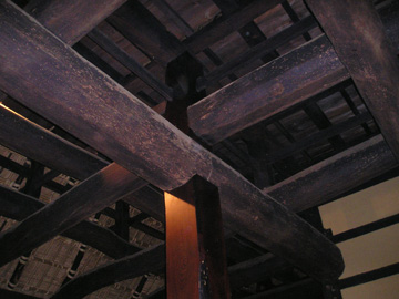 大戸口を入ると40坪の土間があり、一尺五寸角の太い大黒柱が。